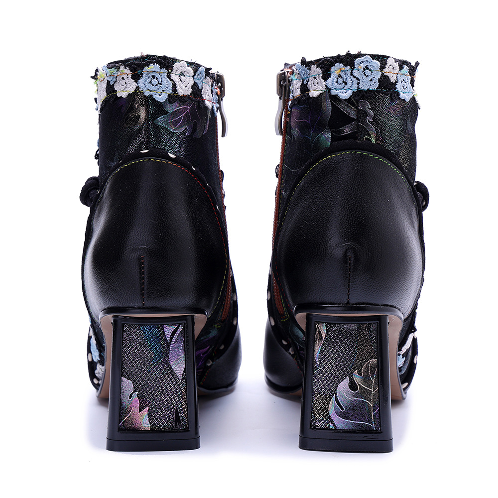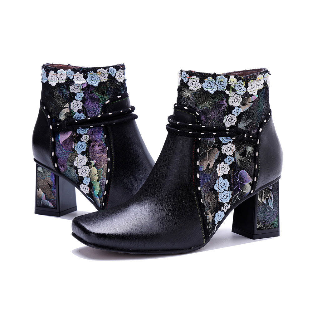 2025 New Leather Hand-polished Retro Lace Comfortable Thick Heel Women's Boots