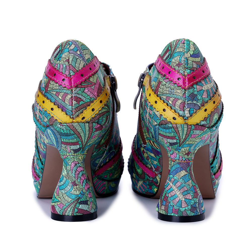 2025 New Leather Hand-polished Splicing Printing Contrasting Colors Women's High Heels